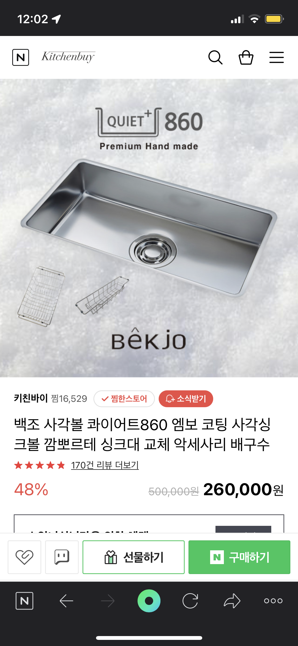 백조 사각볼 콰이어트860 엠보 코팅 사각싱크볼 깜뽀르테 싱크대 교체 악세사리 배구수