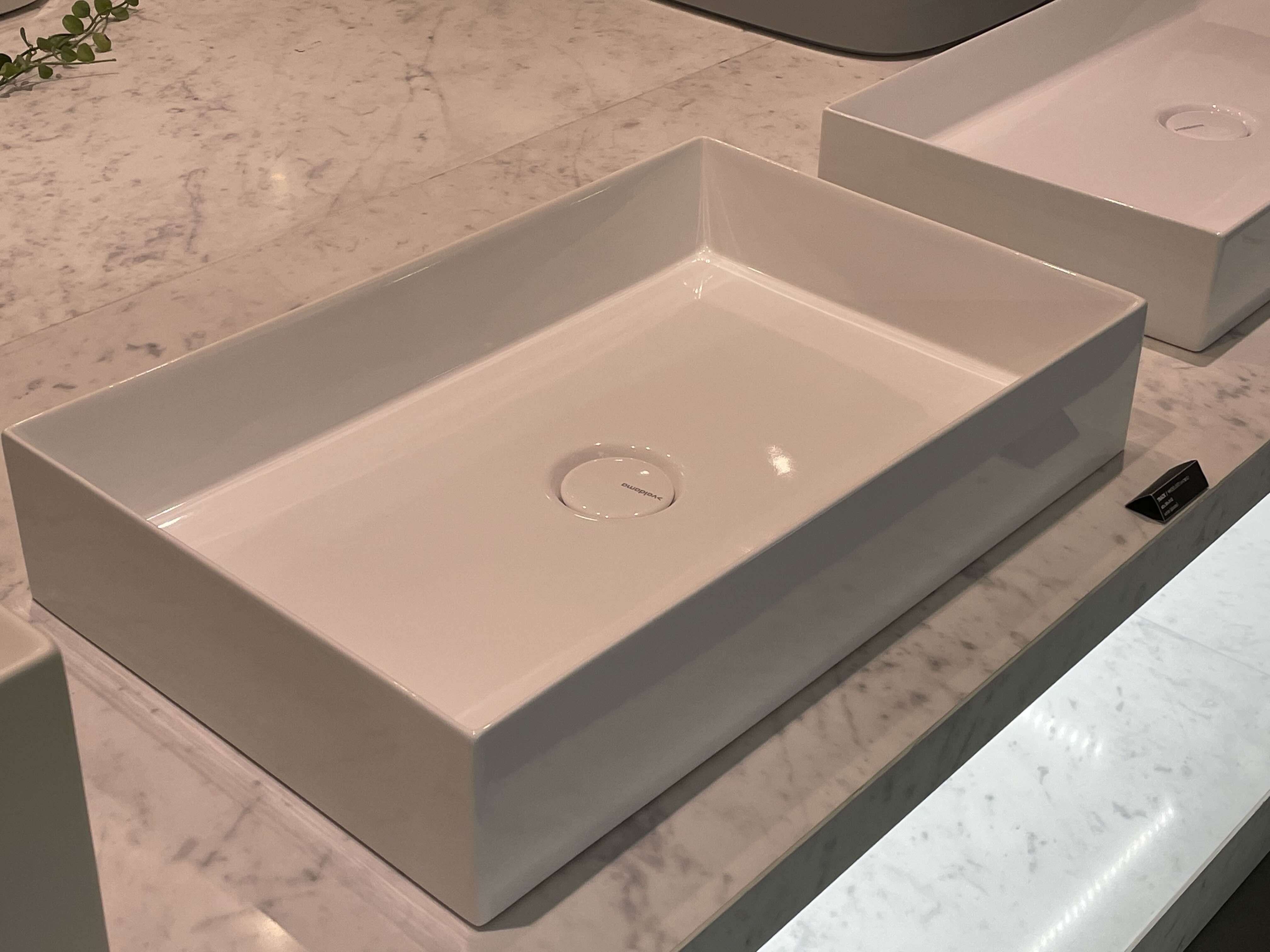 욕실 하부 수납장 혹은 상판 위에 원형의 도기나 유리 재질의 세면기를 얹어 놓는 형태로 탑볼형 세면기로도 불림.